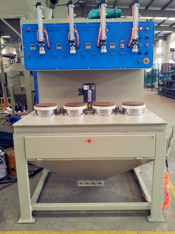 一、 設備組成: a)?? :主機 i.????? 主機由小轉盤轉動機構、噴槍擺動機構、噴砂室、操縱系統(tǒng)、儀表箱等組成,電機均采用臺灣臺邦牌。室體由3mm冷軋鋼板焊接而成,內外表面噴漆,外形尺寸: 1350X1250X1950(mm)。 ii.????? 4支噴砂槍分4組全部固定在軸上定點對工件噴砂;噴嘴材質:進口碳化硼噴嘴。噴嘴通徑:Ф8mm。